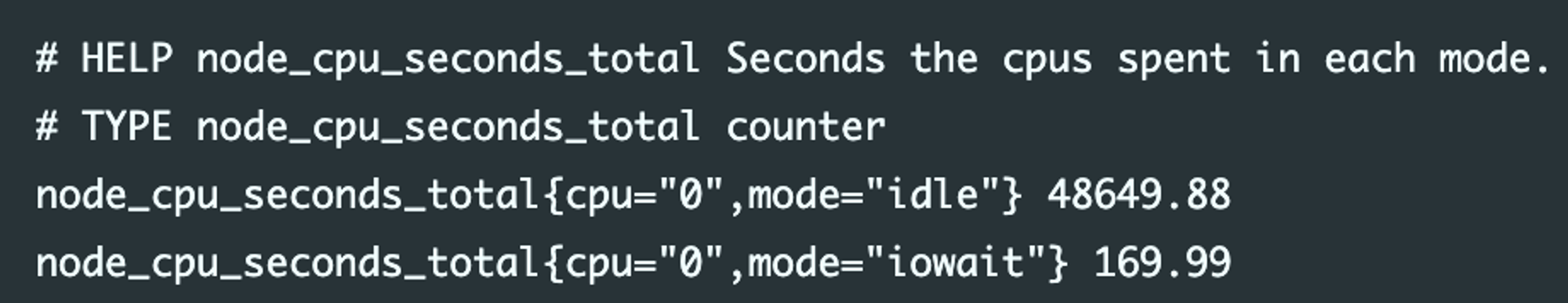 프로메테우스의 메트릭을 정의하면 위처럼 구성되어 있으며 실제 수집되는 메트릭의 예시는 아래와 같다.