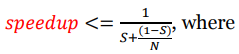 - S: 작업 중 반드시 순차적으로 실행되어야 하는 구성요소의 비율(병렬 X)